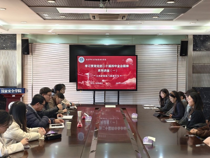 2025年11月19日上午,为扎实推进党的二十届四中全会精神学习走深走实,南京审计大学国家安全学院特邀专家开展系列讲座。《中共中央关于制定国民经济和社会发展第十五个五年规划的建议》明确提出“十五五”时期经济社会发展的主要目标包括国家安全屏障更加巩固,要求国家安全体系和能力进一步加强,重点领域风险得到有效防范化解。本次讲座以《大国新能源与能源安全》为题,由张劲松教授担任主讲人,吸引国家安全学院30余名研究生到场聆听学习,讲座由汪建昌教授主持。